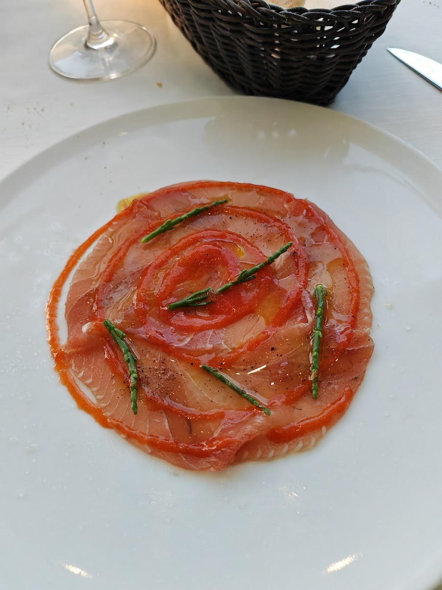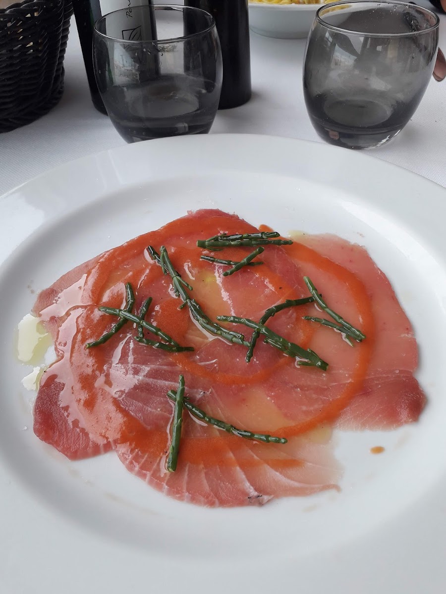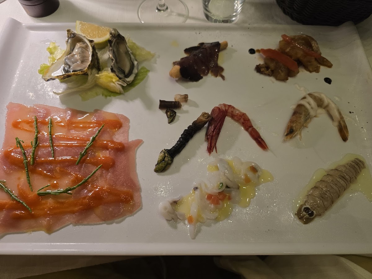 Local secret spot for raw fish. We really had a good eavening with fresh delicious local seafood. Staff friendly and attentive, interior quit appealing but nothing to extraordinary. Quality of food generally good, sometimes over the top With the salt amount, and both pasta dishes were slightly too much Al dente for my taste. The branzino was nicely cooked in a salt crust, unfortunately the waiter took to long to filet it. The plates were not preheated so the fish was served cold. All in all I can recommend this restaurant if you’re into Raw seafood.
